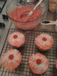 But it was in Alfresco a couple of months ago when the tide turned and I picked up a blue striped box entitled Barefoot Contessa Coconut Cupcakes. Turning the box over I was confronted with foreign measurements of ingredients like ounces and sticks but nonetheless threw my hat in the ring again to try to make something else again from a box.