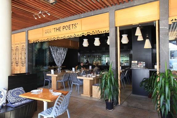 I’ve found another great dumpling place to go to and it’s tucked away in Top Ryde of all places! The restaurant is called The Poets and gives nothing away in its name but is situated in the alfresco area of the shopping centre is a restaurant with excellent quality Northern Chinese food at reasonable prices too. Unlike other dumpling haunts, The Poets is nicely decorated with comfortable custom made chairs, blue and white oriental cushions and has a wall entirely made out of chopsticks.