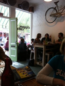 After a short exchange of gossip and a peep and ooh at a sleeping baby, our lunch was ready and laid before us. I had ordered the Saffron Pappardelle and Lizzy had ordered the Homemade Cannelloni. Immediately I was impressed with the generous serving of saffron-tinged pappardelle ribbons accompanied by bite sized chunks of chicken, olives, chorizo and capsicum. The plate was alive with colour and texture and after a sprinkling of freshly cracked pepper, I began to devour it. Meanwhile, Lizzy’s cannelloni had every essence of “homemade” injected in her lunch. Cheese was oozing and bubbling on top and the cannelloni tubes were trying to burst out from underneath the blanket of mozzarella – visibly filled to the brim with a steaming bolognese sauce. Conversation halted and silence emerged between the two of us as lunch was undoubtedly enjoyed and we made a pact to go back!